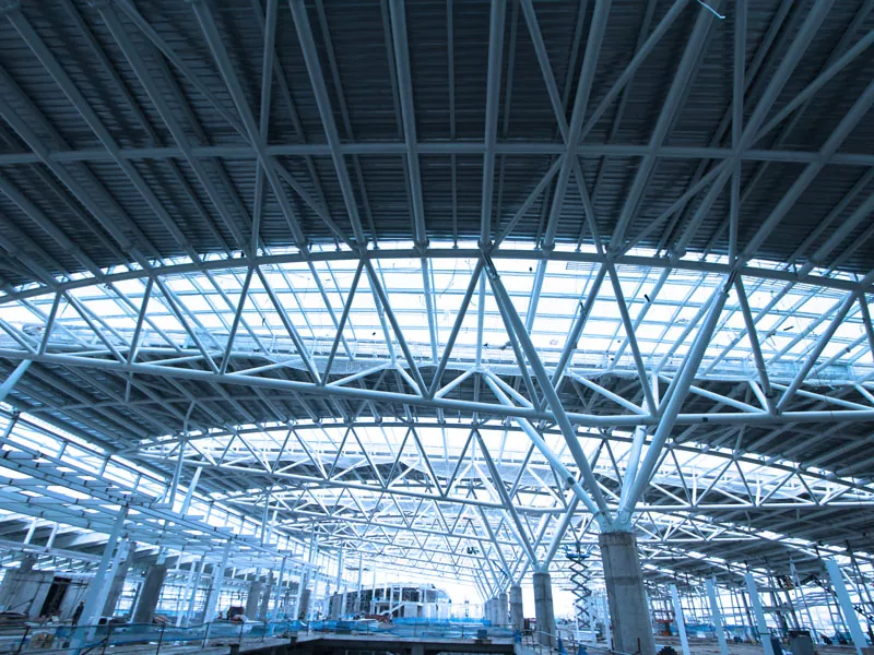 5. Tấm lợp và tấm ốp bên ngoài Sau khi khung thép hoàn thành, hệ thống mái được lắp đặt, thường sử dụng các tấm kim loại cách nhiệt hoặc vật liệu màng một lớp. Các bức tường bên ngoài, nếu có trong thiết kế, cũng được lắp đặt bằng các tấm kim loại, gạch hoặc các vật liệu ốp khác.