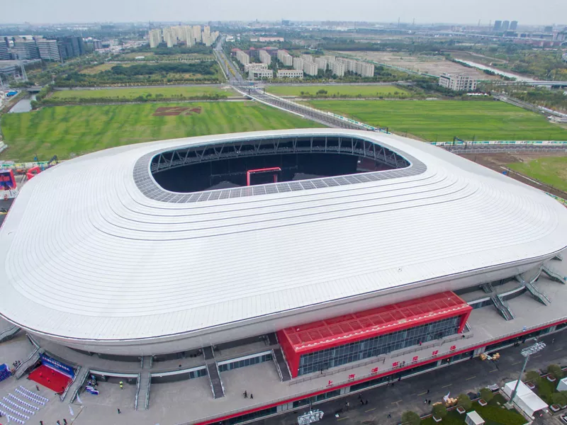 1. Sân vận động bóng đá cấu trúc thép sử dụng thép cường độ cao làm vật liệu chính, với trọng lượng nhẹ, hiệu suất chống địa chấn và gió tuyệt vời.